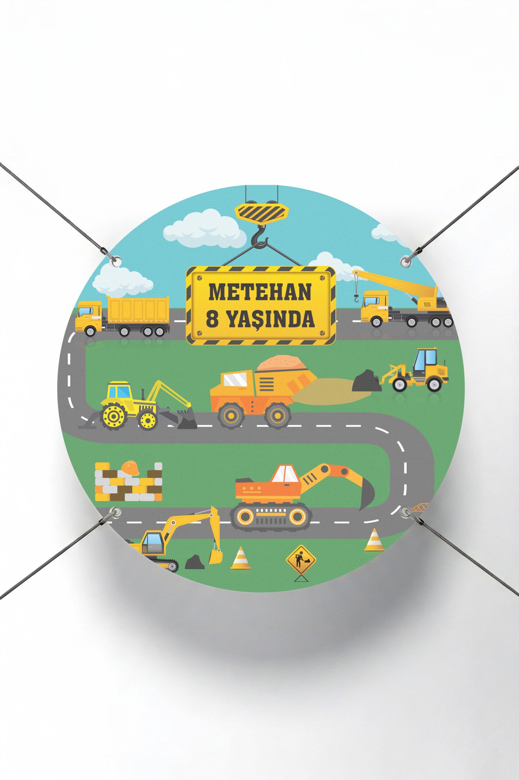 İnşaat Araçları Temalı Yuvarlak Doğum Günü Afişi Özellikleri